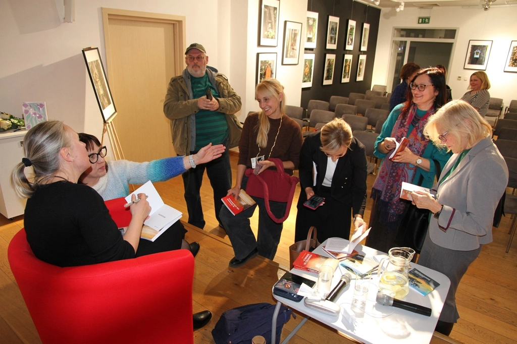 Biblioteka Manhattan okazała się przestronna, nieco hałaśliwa. W kąciku autorskim czerwień ścian harmonizowała z suknią Joanny prowadzącej spotkanie, a zasłuchani miłośnicy poezji z Trójmiasta chłonęli każde słowo.