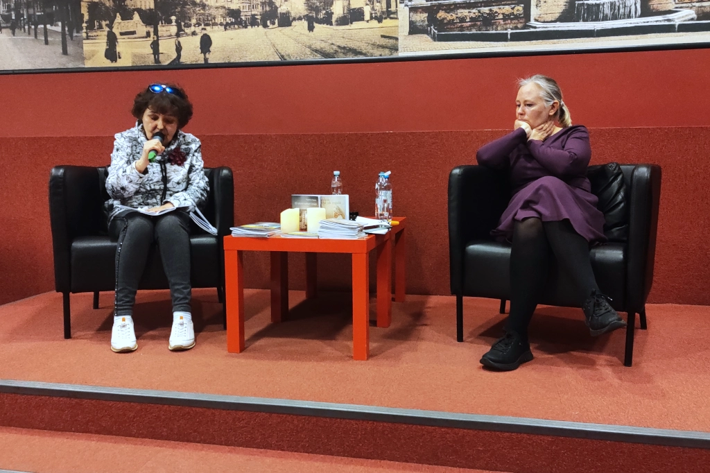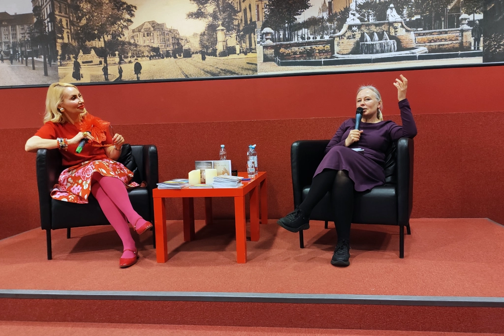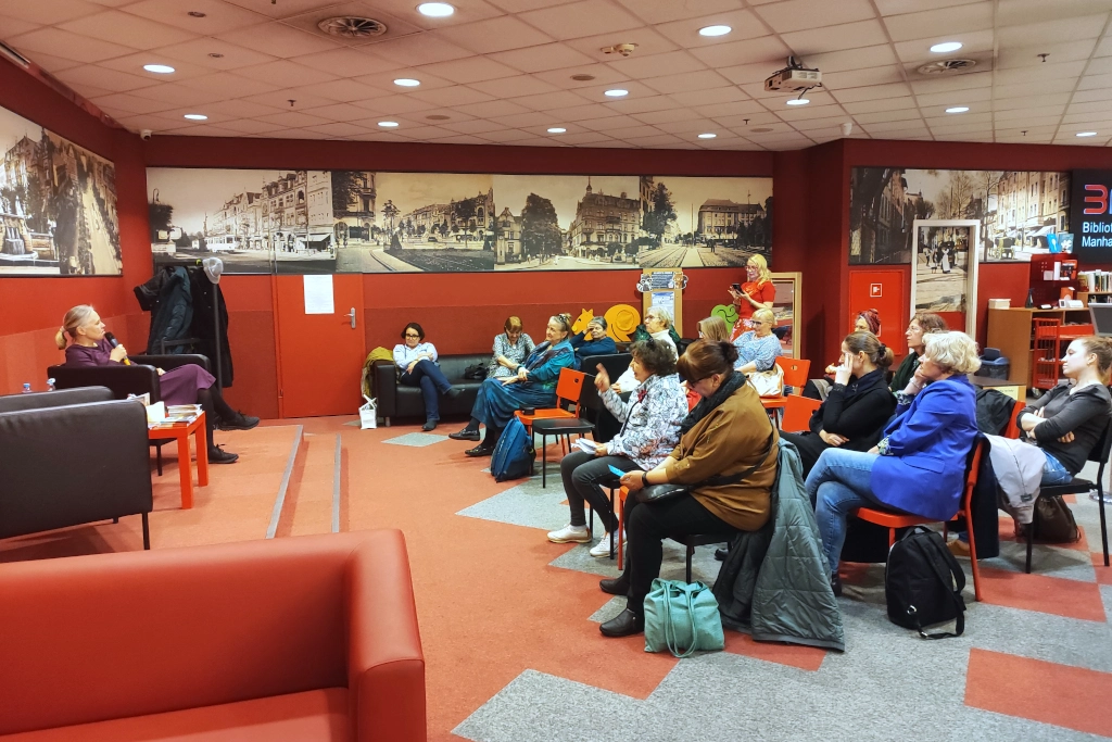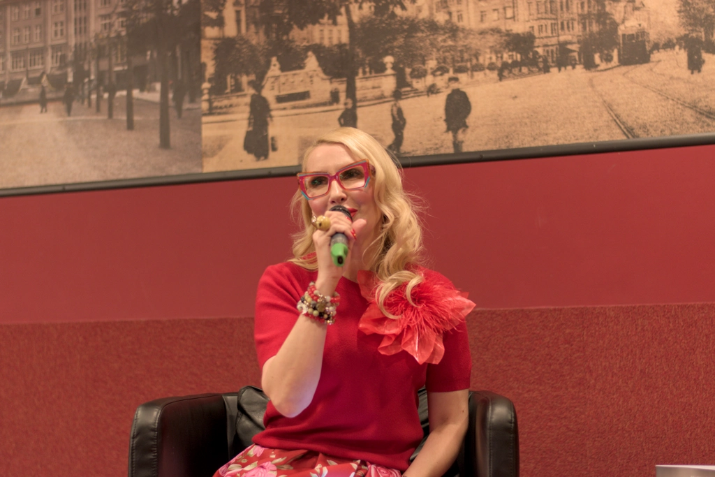Biblioteka Manhattan okazała się przestronna, nieco hałaśliwa. W kąciku autorskim czerwień ścian harmonizowała z suknią Joanny prowadzącej spotkanie, a zasłuchani miłośnicy poezji z Trójmiasta chłonęli każde słowo.