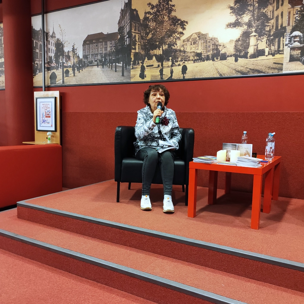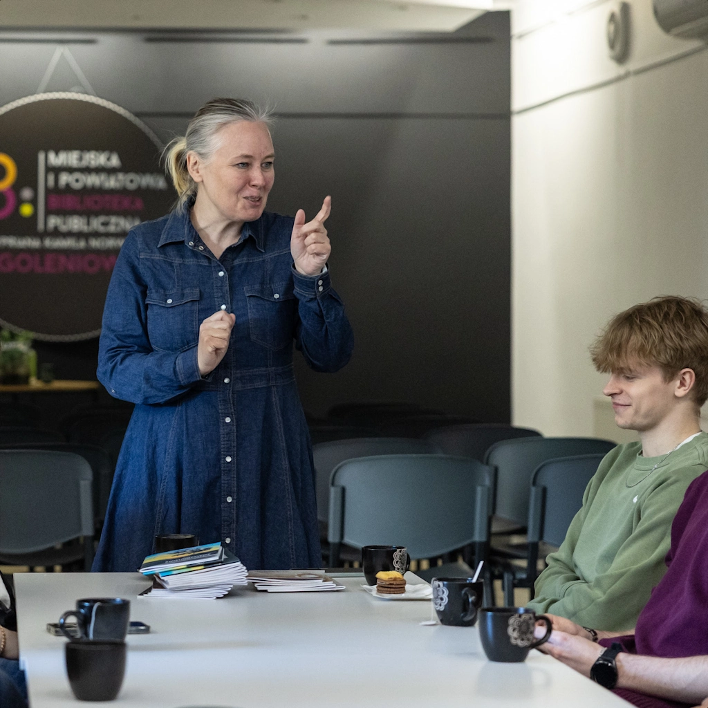Szkolenie odbyło się w Miejskiej i Powiatowej Bibliotece dzięki pani Jolancie Kortiak-Gulbinowicz, której udało się zarazić poezją uczniów pobliskiej szkoły ogólnokształcącej. Młodzi ludzie z zadumą słuchali poezji i z wypiekami na twarzach wsłuchiwali się w poetkę.