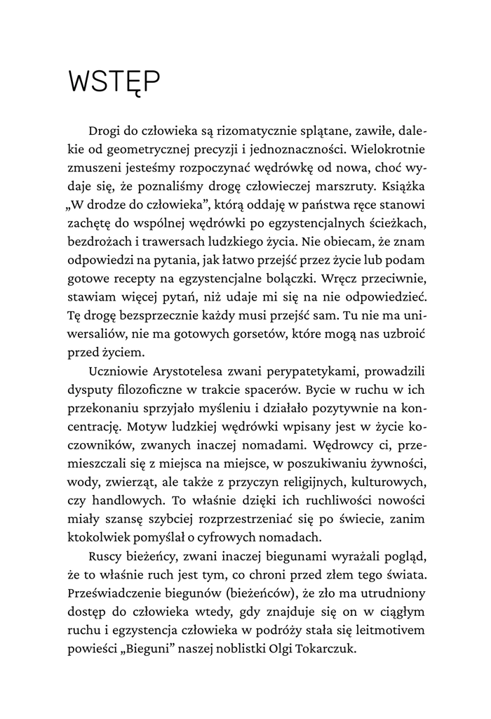Dróg do Człowieka jest tyle, ile osobowości, temperamentów, odcieni wrażliwości. Nie ma tu żadnych uniwersaliów, do każdego potrzeba inaczej, każdy domaga się innego języka. Bywa, że to droga wyboista, pełna cierni i kamienistych podejść, podkopujących wiarę w człowieczeństwo. Bywa, że to szlak pełen słonecznych ludzi, zawsze gotowych podać nam rękę.