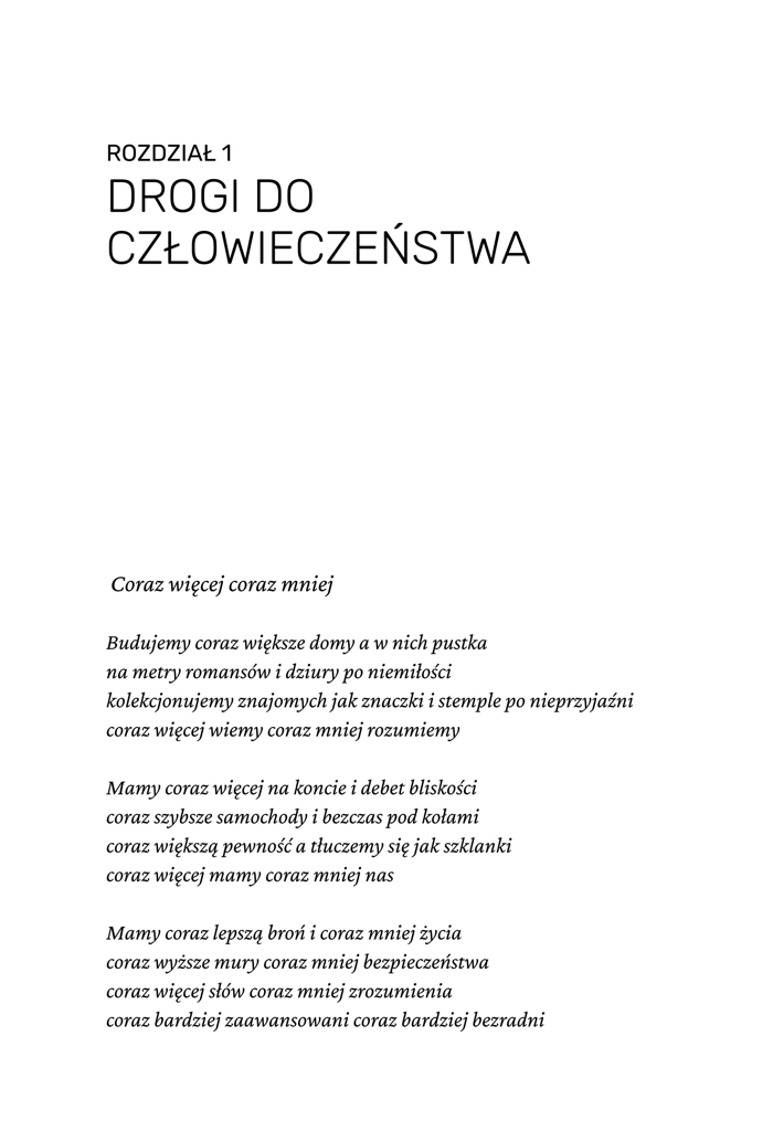 Wyprzedzając pytania, o czym jest ta książka, pozwólcie, że wytłumaczę się poezją, bo ta forma wyrazu jest mi od dłuższego czasu najbliższa.